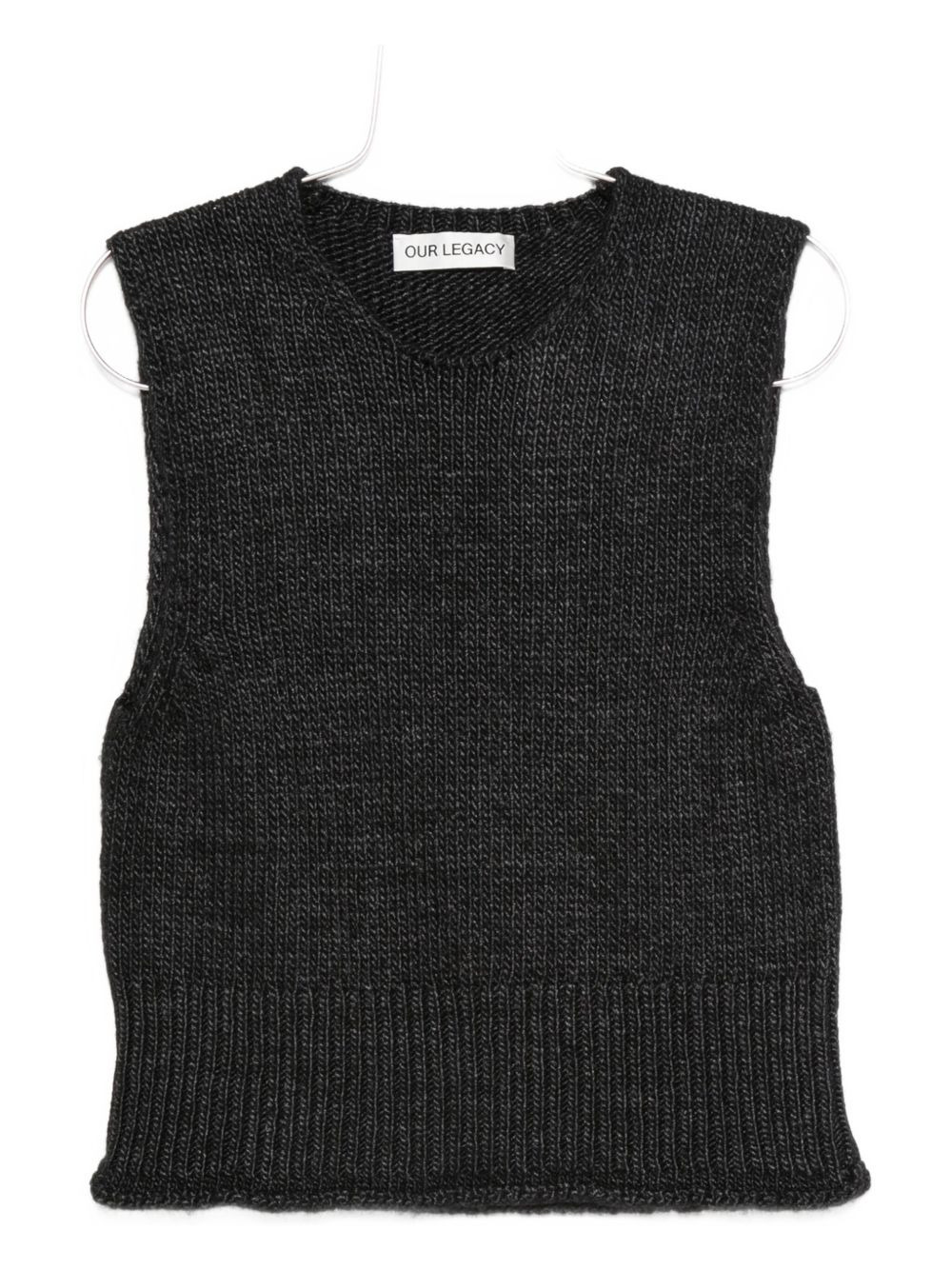 ribbed knitted tank top Highlights - Black - Ribbed hem - Sleeveless - Round neck Imported Composition Fabric 100% SIZE & FIT Model measurements Height 6 ft 3 in(1.9 m) Bust/Chest 35.43 in(90 cm) Hips 35.82 in(91 cm) Waist 27.95 in(71 cm) Washing instructions Read Manufacturer Guidelines