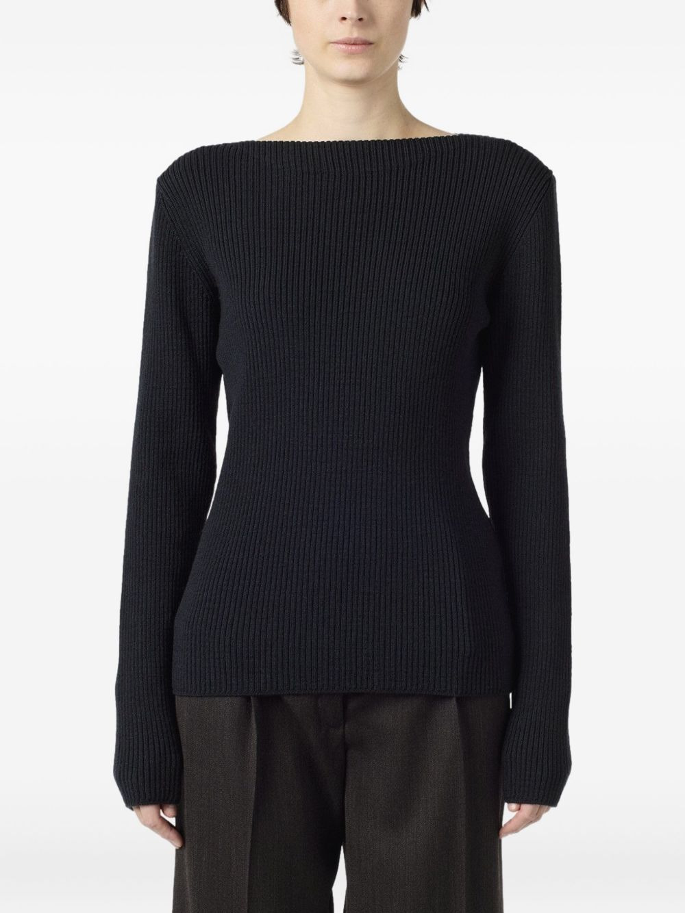 ribbed sweater Highlights - Black - Ribbed knit - Boat neck - Long sleeves Imported Composition Merino 100% Washing instructions Read Manufacturer Guidelines