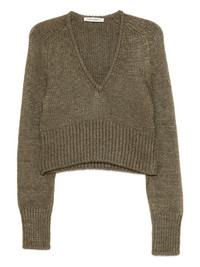 Sharp jumper Highlights - Khaki green - V-neck - Long sleeves Imported Composition Wool 50%, Silk 50% SIZE & FIT Model measurements Height 5 ft 10 in(1.78 m) Bust/Chest 31.88 in(81 cm) Hips 37 in(94 cm) Waist 25.19 in(64 cm) FittingInformation Designed to be unstructured, offering a loose fit throughout Constructed with additional length on the sleeve Made with a midweight knit, this piece offers some stretch Washing instructions Hand Wash