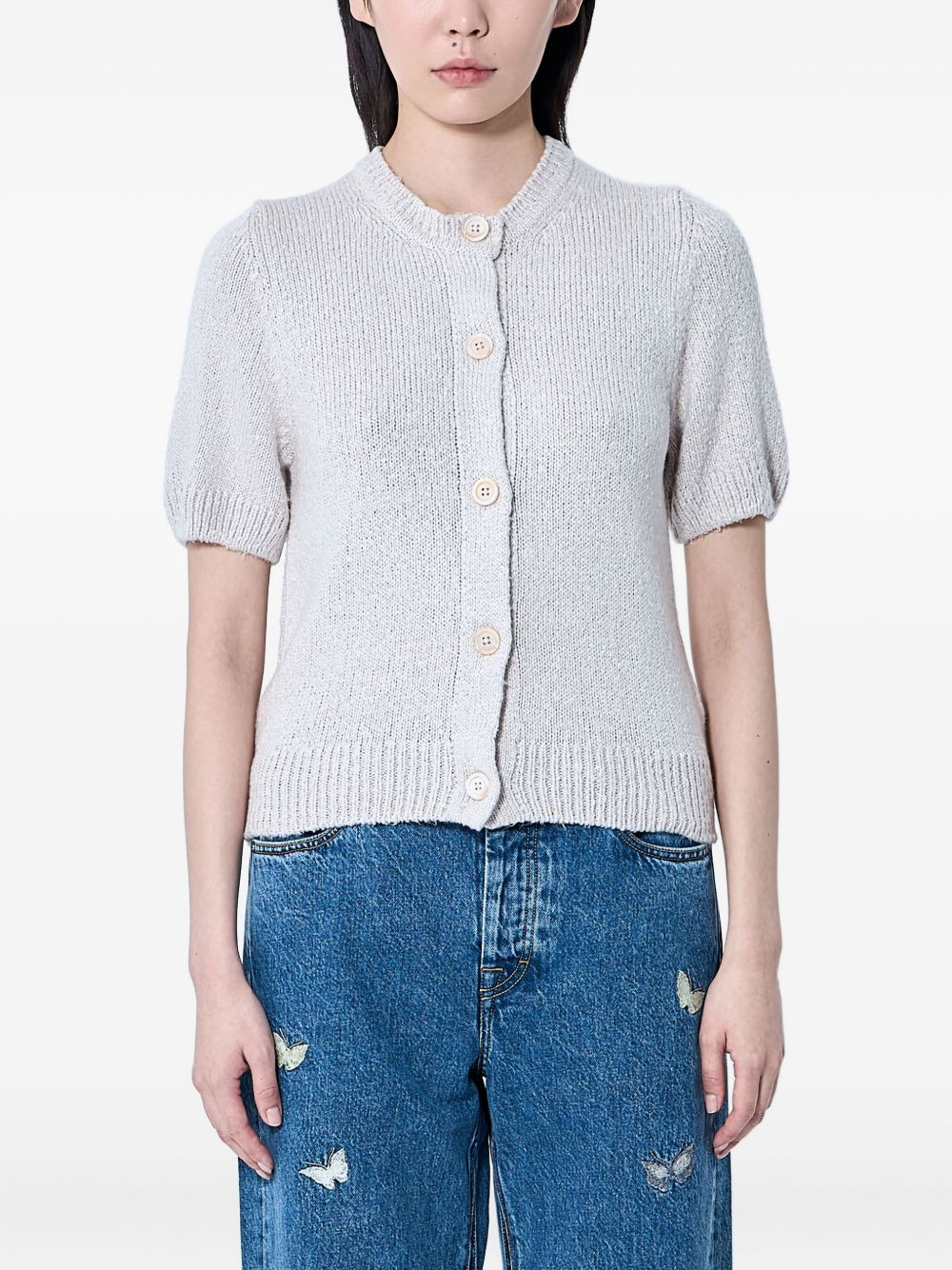 silk knit button top Highlights - Beige - Silk knit - Crew neck - Short sleeves - Button fastening - Rib trims Imported Composition Silk 100% Washing instructions Read Manufacturer Guidelines