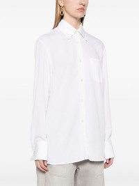 Sincere shirt Highlights - White/beige - Front button fastening with mother-of-pearl buttons - Vertical stripe pattern - Button-down collar - Long sleeves - Buttoned cuffs - Chest patch pocket - Curved hem Imported Composition Mother of Pearl 100%, Viscose 88%, Polyamide 12% SIZE & FIT Model measurements Height 5 ft 9 in(1.75 m) Bust/Chest 31.88 in(81 cm) Hips 34.64 in(88 cm) Waist 24.01 in(61 cm) FittingInformation Designed to be unstructured, offering a loose fit throughout Made from a midweight non-stretch fabric