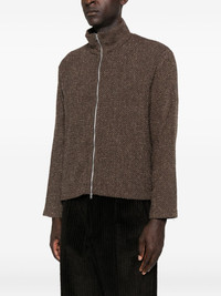 Shrunken Fullzip Polo Brown Sparse Buckle Weave