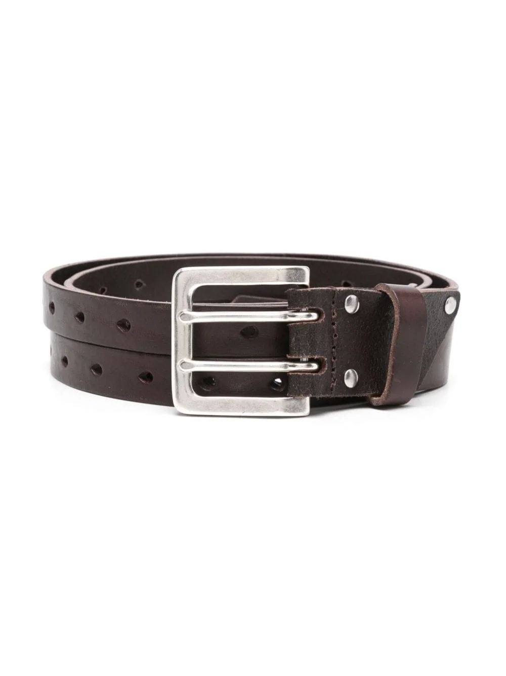 Split leather belt Highlights - Cedar brown - Calf leather - Smooth grain - Double-strap design - Asymmetric design - Front buckle fastening - Silver-tone stud embellishment - Punched holes - Adjustable fit Imported Composition Calf Leather 100% SIZE & FIT Measurement TOTAL LENGTH 46.45 in(118 cm) WIDTH 1.96 in(5 cm)
