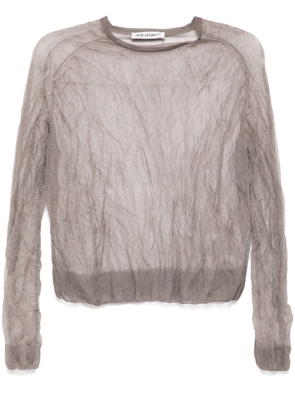 True top Highlights - Taupe grey - Ribbed cuffs and hem - Crease effect - Semi-sheer construction Imported Composition Outer: Silk 55%, Metallic Fibre 45% SIZE & FIT Model measurements Height 5 ft 9 in(1.76 m) Bust/Chest 31.1 in(79 cm) Hips 35.03 in(89 cm) Waist 24.4 in(62 cm) FittingInformation Designed to be unstructured, offering a loose fit throughout Made with a fine knit, this piece offers some stretch Washing instructions Hand Wash