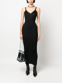 V-neck ribbed-knit dress OUR LEGACY's affinity for minimalist Scandinavian design principles is evident in this black ribbed-knit dress. Woven from Italian yarn, it's characterised by its tonal construction and long, slim fit. Imported Composition Polyester 100% SIZE & FIT Model measurements Height 5 ft 10 in(1.78 m) Bust/Chest 33.07 in(84 cm) Hips 36.61 in(93 cm) Waist 24.8 in(63 cm) FittingInformation This piece fits true to size. We recommend you get your regular size Cut for a close fit Made with a mid-weight fabric Washing instructions Hand Wash