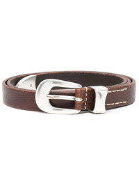 Western leather buckle belt Highlights - Chocolate brown - Leather - Grained texture - Western style - Pin-buckle fastening - Pointed tip - Silver-tone hardware - Punched holes - Adjustable fit Imported Composition Leather 100% SIZE & FIT Measurement Minimum Length 33.46 in(85 cm) TOTAL LENGTH 37.4 in(95 cm) WIDTH 0.78 in(2 cm)