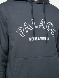 Couture logo-print hoodie Palace means Couture. As exemplified by this navy blue cotton Couture hoodie. That depends what you mean by 'couture', obviously. Featuring a drawstring hood, long sleeves, a kangaroo pocket, a printed logo to the front and elasticated cuffs. Imported Composition Cotton 100% SIZE & FIT Model measurements Height 6 ft 2 in(1.88 m) Bust/Chest 38.18 in(97 cm) Hips 37 in(94 cm) Waist 29.92 in(76 cm) Washing instructions Machine Wash