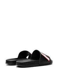 logo-patch rubber slides The skate brand, Palace Skateboards, continues expanding its legacy of streetwear staples. Crafted from rubber and decorated with a contrasting logo on top, these slip-on slides show off the brand's casual style. Imported Composition PVC 100%