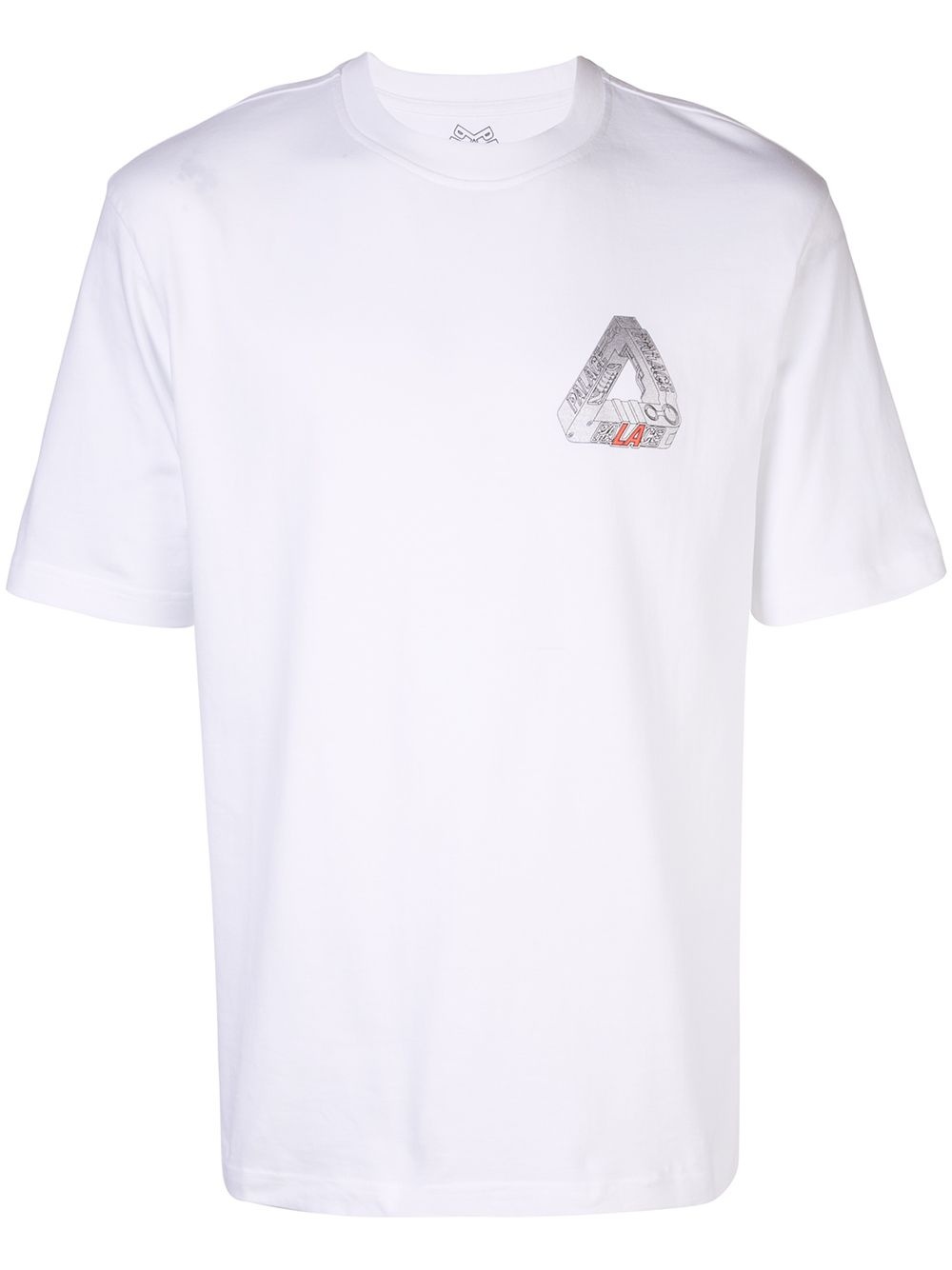 Terminator "White" T-Shirt Hasta la vista, baby. With this white cotton logo T-shirt from Palace, you can pay homage to your favourite cyborg assassin while staying true to Palace's siganture Tri-Ferg logo. Say hello to your little friend. Featuring a round neck, short sleeves and a logo to the chest. Imported Composition Cotton 100% SIZE & FIT Model measurements Height 6 ft 2 in(1.88 m) Bust/Chest 38.18 in(97 cm) Hips 37 in(94 cm) Waist 29.92 in(76 cm) Washing instructions Dry Clean Only