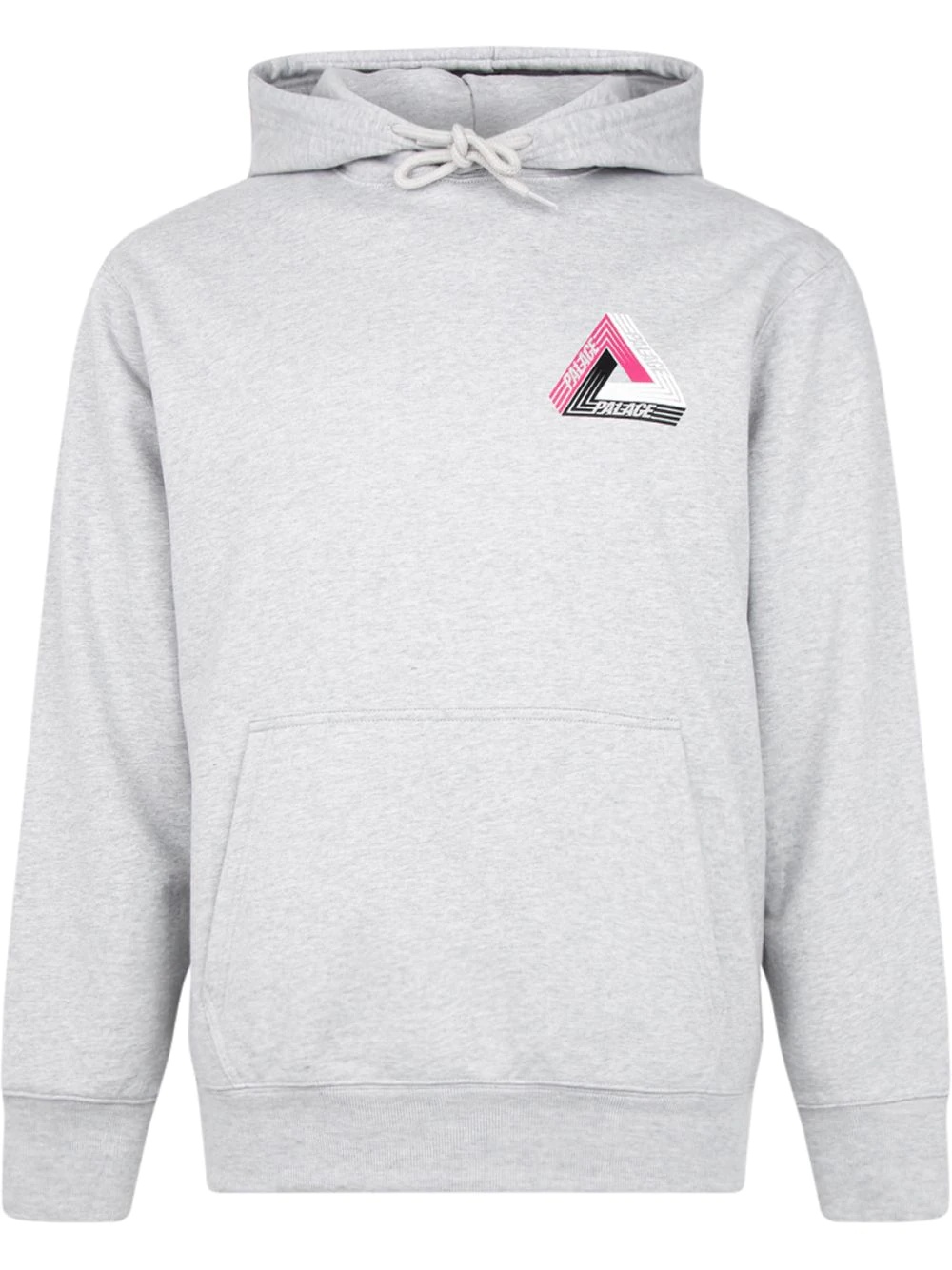 Tri-Dart logo-print hoodie London-based skate brand Palace's ever-present Tri-Ferg logo has seen many iterations. This stroke-style SS21 version is stamped on this hoodie's chest, with a larger size to the rear. The grey marl background highlights the motif's hot pink, white and black colourway. Made in United States Composition Cotton 100%