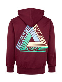 Tri-Dart "Burgundy" drawstring hoodie London-based skate brand Palace's ever-present Tri-Ferg logo has seen many iterations. This stroke-style SS21 version is stamped on this hoodie's chest, with a larger size to the rear. The maroon background highlights the motif's pastel-hued colourway. Made in United States Composition Cotton 100%