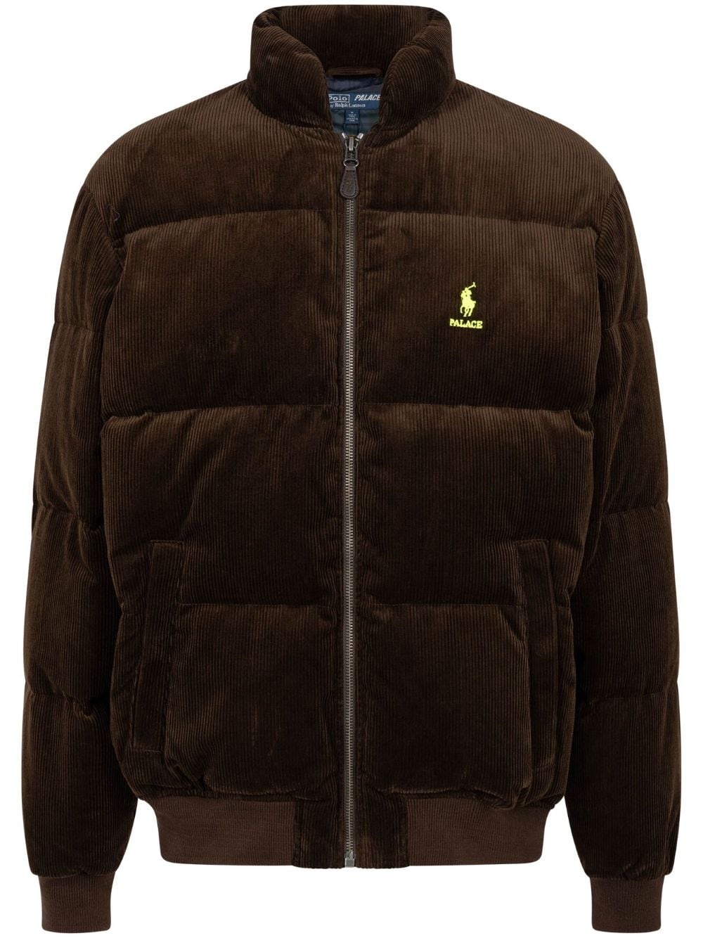 x Ralph Lauren corduroy down jacket This down jacket is a fusion of Ralph Lauren's timeless style and Palace's streetwear aesthetic. Made from a 9-wale corduroy material, it has a padded design adorned with the logos of both brands at the chest in a bold lime green colour, standing out against the jacket's Mohican Brown hue. Highlights - Brown - Cotton blend - Down-feather filling - Embroidered logo at the chest - Corduroy - Padded design - High neck - Front zip fastening - Two side welt pockets - Long sleeves - Ribbed cuffs and hem - When buying this unisex item, keep in mind that it is graded in standard men's sizing. Imported Composition Lining: Polyester 100%, Duck Down 90%, Duck Feathers 10% Outer: Cotton 99%, Polyurethane 1% Washing instructions Read Manufacturer Guidelines