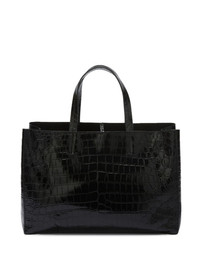 24/7 leather tote bag This leather Palm Angels tote bag features an embossed crocodile effect and signature tattoo-inspired logo lettering on the front. Highlights - Black - Leather - Embossed crocodile effect - Logo print to the front - Two flat top handles - Strap fastening - Main compartment Made in Italy Composition Outer: Leather 100% Lining: Polyamide 60%, Polyurethane 40%