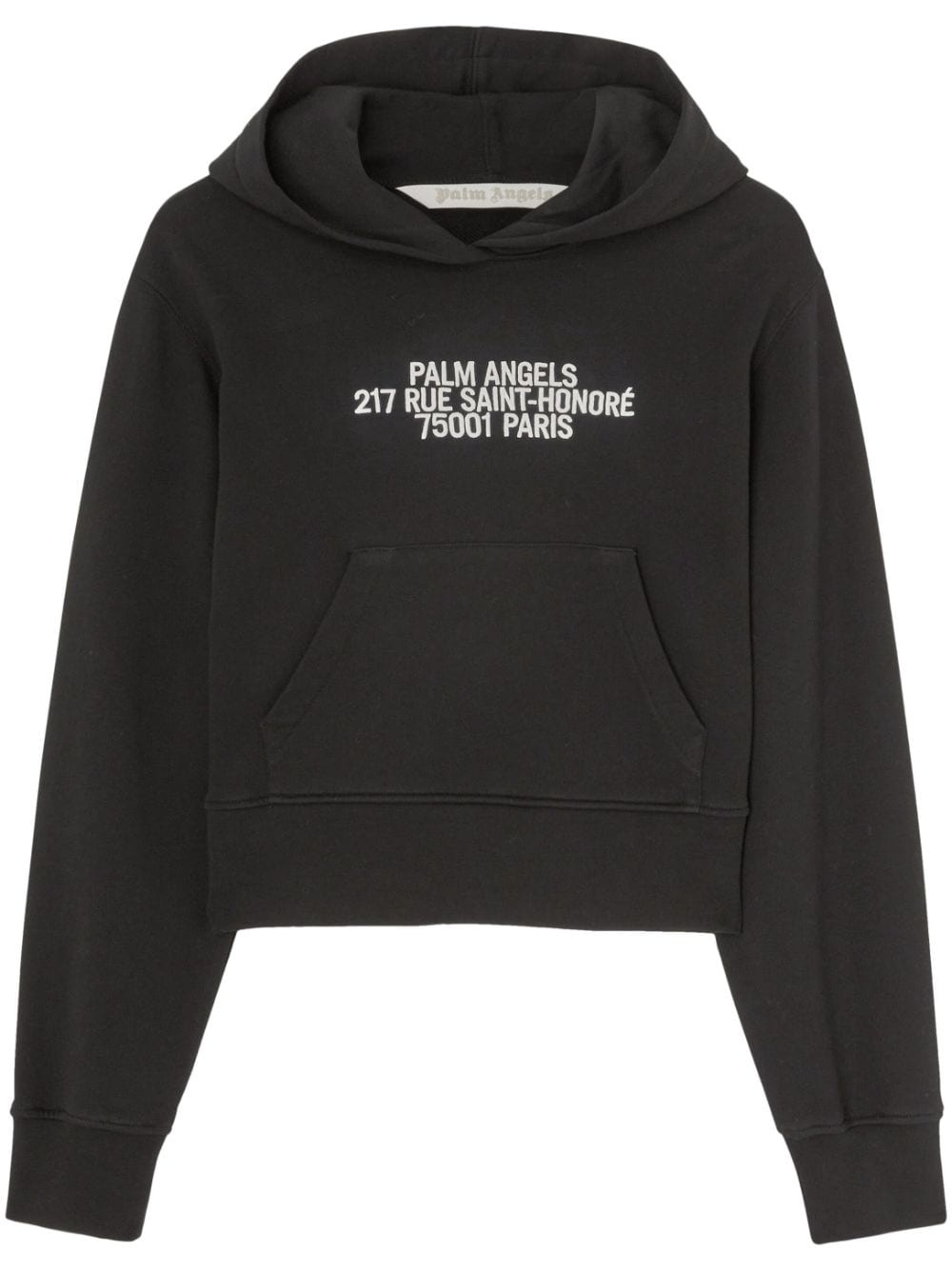 75001 cotton hoodie Highlights - Black - Cotton - Slogan print to the front - Classic hood - Long sleeves - Ribbed cuffs and hem - Front pouch pocket Imported Composition Cotton 100% SIZE & FIT FittingInformation Designed for a relaxed fit, this piece allows for comfort and movement when worn Cropped in length This piece fits true to size – take your usual size Measurement SLEEVE LENGTH 25.98 in(66 cm) Shoulder Width 19.29 in(49 cm) LENGTH 21.25 in(54 cm) BUST 47.24 in(120 cm)