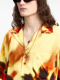 abstract-print notched-collar shirt Highlights - Pastel yellow/bright red - Abstract pattern print - Logo patch at the chest - Notched collar - V-neck - Front button fastening - Drop shoulder - Short sleeves - Chest patch pocket - Straight hem Made in Italy Composition Viscose 100%