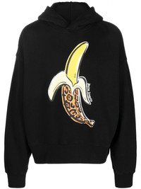 banana-print cotton hoodie banana-print cotton hoodie from PALM ANGELS featuring black/multicolour, cotton, logo print to the rear, graphic print at the chest, slouchy hood, drop shoulder, long sleeves, straight hem and ribbed trim. Imported Composition Cotton 100% SIZE & FIT Model measurements Height 6 ft 2 in(1.88 m) Bust/Chest 37.79 in(96 cm) Hips 38.58 in(98 cm) Waist 29.52 in(75 cm) FittingInformation This piece fits true to size. We recommend you get your regular size Cut for a loose fit Made with a mid-weight fabric Washing instructions Hand Wash