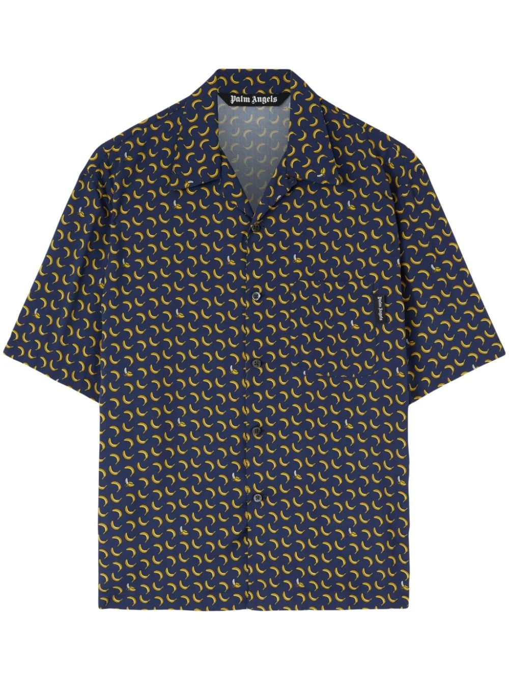 banana-print shirt Highlights - Navy blue/yellow - All-over graphic print - Mini logo tag - Notched collar - Front button fastening - Short sleeves - Chest patch pocket Imported Composition Viscose 100% Washing instructions Read Manufacturer Guidelines