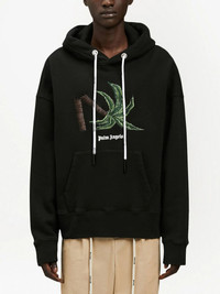 Broken Palm printed hoodie Each season Palm Angels adds logo-sprawled charm to wardrobe staples. This hoodie is a fine example, crafted from soft black cotton with a Broken Palm logo printed across the chest. Made in Italy Composition Cotton 100%, Viscose 80%, Polyester 20% SIZE & FIT Measurement CHEST 55.11 in(140 cm) SLEEVE LENGTH 22.04 in(56 cm) LENGTH 24.8 in(63 cm)