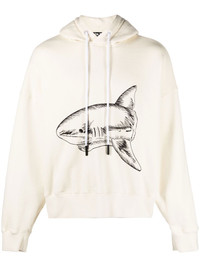Broken Shark organic cotton hoodie Palm Angels' signature Broken Shark design appears front and back on this hoodie. The black, illustrative print lends a graphic touch to the neutral backdrop. Highlights - Cream white - Organic cotton - Drawstring hood - Long sleeves - Shark print - Logo print to the rear - Straight hem Made in Italy Composition Cotton 100%
