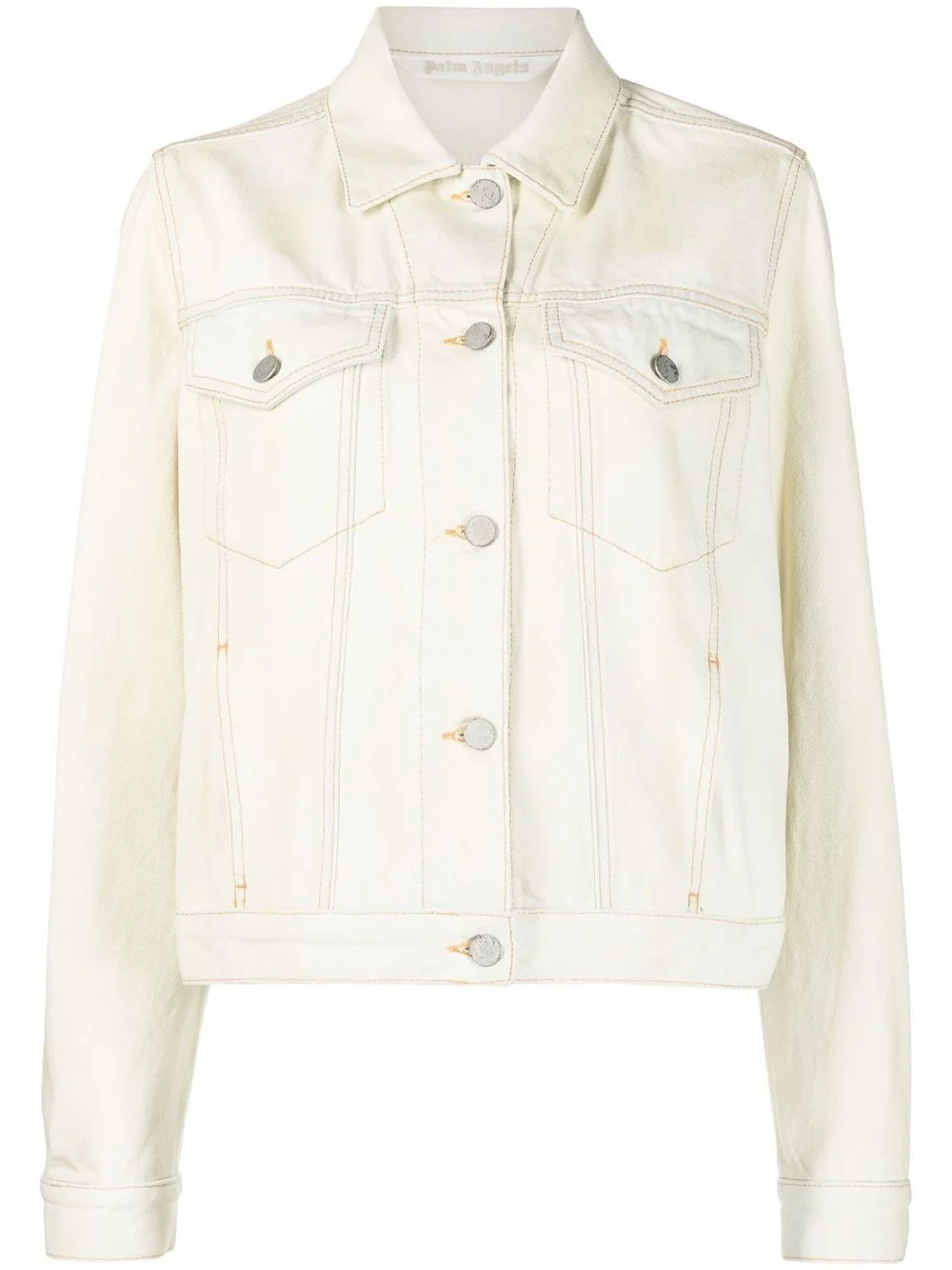 bull denim jacket This Palm Angels denim jacket merges a laid-back spirit with sartorial know-how. Contrast topstitching nods to classic denim styles, while a large leather logo patch emphasises the brand's love of bold branding. Made in Italy Composition Cotton 100%, Leather 100% SIZE & FIT Model measurements Height 5 ft 10 in(1.79 m) Bust/Chest 31.1 in(79 cm) Hips 35.03 in(89 cm) Waist 24.01 in(61 cm) FittingInformation This piece fits true to size. We recommend you get your regular size Cut for a loose fit Made with a mid-weight non-stretch fabric Washing instructions Machine Wash
