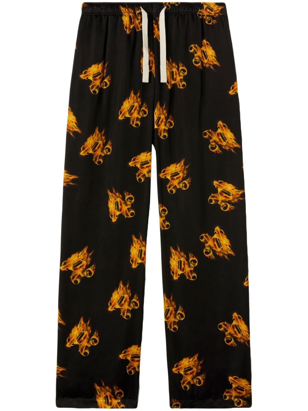 Burning monogram-embroidered track pants Highlights - Black/amber orange - All-over logo print - Elasticated drawstring waistband - Two side slit pockets - Two rear button-fastening jetted pockets - Straight leg Imported Composition Viscose 100%