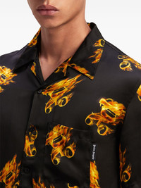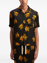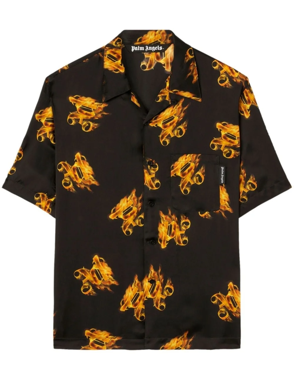 Burning monogram-print shirt Highlights - Black/amber orange - All-over logo print - Logo tag - Notched lapels - Front button fastening - Chest patch pocket - Short sleeves - Straight hem Imported Composition Viscose 100% Washing instructions Dry Clean Only