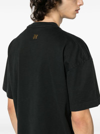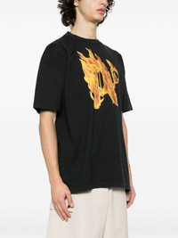 Burning monogram-print T-shirt The flaming PA monogram print at the front of this black cotton T-shirt is inspired by a photo of a burning palm tree taken by Palm Angels’ founder – it was included in the book he published to launch the brand. Highlights - Black, burnt orange - Cotton - Jersey texture - Crew neck - Short sleeves - Logo print at the chest - Gold-tone logo plaque at the nape Made In Italy Composition Cotton 100% SIZE & FIT Model measurements Height 6 ft 1 in(1.85 m) Bust/Chest 36.22 in(92 cm) Hips 36.22 in(92 cm) Waist 27.55 in(70 cm) FittingInformation Designed for a relaxed fit, this piece allows for comfort and movement when worn Made from a midweight non-stretch fabric, this piece offers minimal elasticity when worn This piece fits true to size – take your usual size Washing instructions Hand Wash
