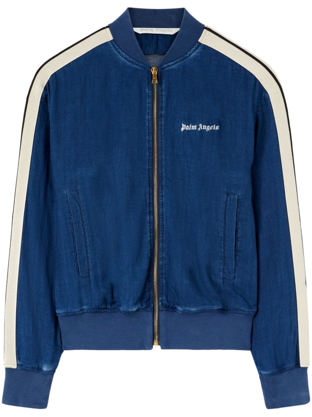 Chambre denim bomber jacket Highlights - Indigo blue/off-white - Cotton - Denim - Embroidered logo at the chest - Side stripe detailing - Ribbed band collar - Front zip fastening - Long sleeves - Slip pockets to the sides - Ribbed cuffs and hem Made in Italy Composition Cotton 100%
