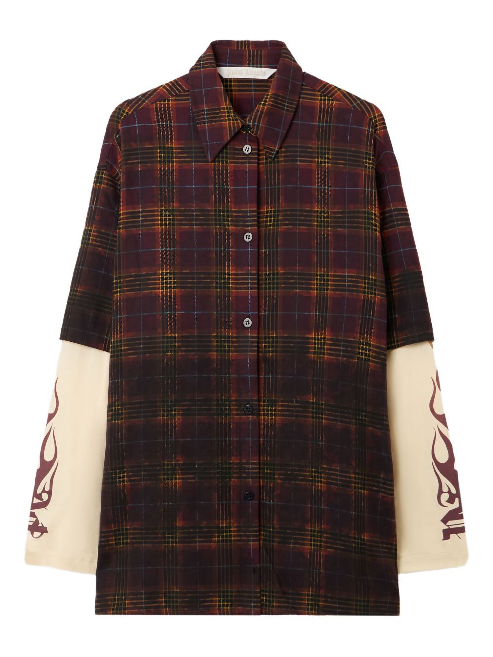 check-flames shirt Highlights - Burgundy - Check pattern - Flame print sleeves - Classic collar - Button-up front - Logo patch Made in Italy Composition Cotton 100%, Polyester 62%, Viscose 35%, Elastane 3% Washing instructions Read Manufacturer Guidelines