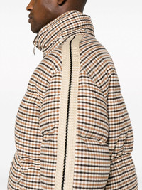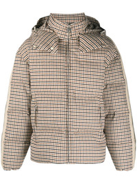 check-pattern hooded puffer jacket Known for its striking streetwear aesthetic, Palm Angels presents this down feather padded jacket. Complete with a all-over micro check pattern, the piece is punctuated by the side stripe detailing which lends a subtly sporty appeal. Highlights - Light brown - Down-feather filling - Padded design - Quilted - Mini check pattern - High neck - Detachable hood - Front zip fastening - Long sleeves - Two side zip-fastening pockets - Straight hem Made in Italy Composition Outer: Cotton 70%, Polyester 30% Lining: Polyamide 100%, Polyester 100%, Down 80%, Feather 20% Washing instructions Dry Clean Only