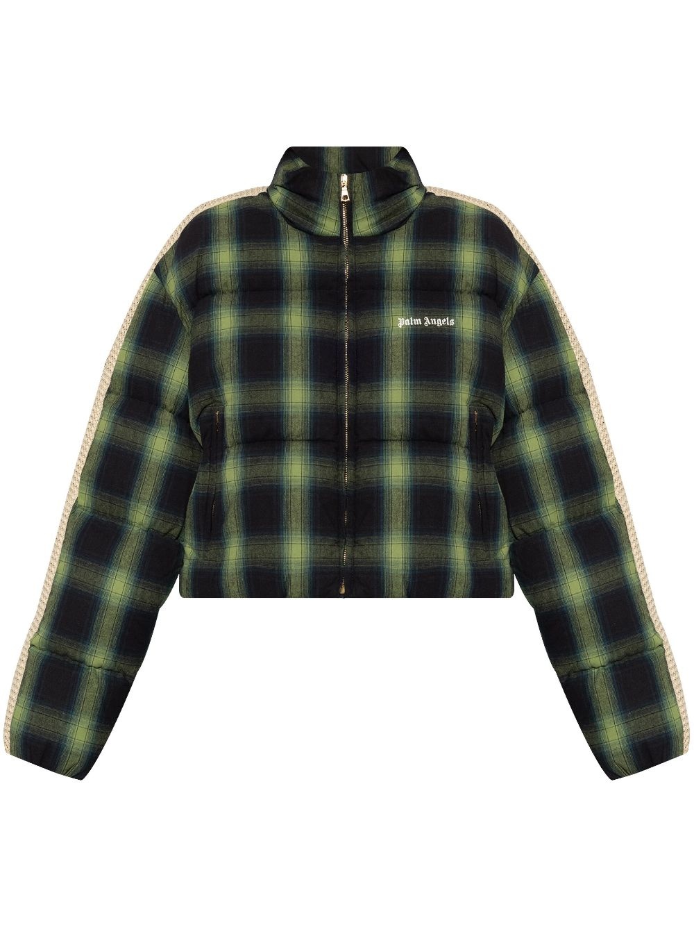 check-pattern puffer jacket Highlights - Black/green - Feather down - Padded design - Check pattern - Front zip fastening - High neck - Logo print at the chest - Long sleeves - Elasticated cuffs - Side stripe detailing - Straight hem Made in Italy Composition Outer: Cotton 100% Lining: Polyester 100%, Feather Down 100% Washing instructions Read Manufacturer Guidelines