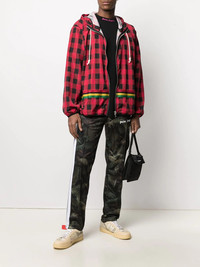 check-print hooded jacket You love Palm Angels and you want the world to know it. Which is why you wear this check-print hooded jacket with pride. Emblazoned with a bold logo to the back, it's the perfect piece to represent your favourite brand. Made in Italy Composition Outer: Polyester 100% Washing instructions Machine Wash