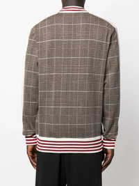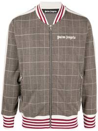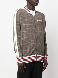 checked bomber jacket A sporty take on a classic style, this Palm Angels jacket is a prime example of the label's contemporary aesthetic. It mixes a timeless brown check pattern with sportswear-inspired red stripes. Made in Italy Composition Outer: Acrylic 50%, Wool 50%, Viscose 48%, Polyamide 42%, Polyester 6%, Spandex/Elastane 4% Lining: Polyester 100% SIZE & FIT Model measurements Height 6 ft 1 in(1.86 m) Bust/Chest 34.64 in(88 cm) Hips 35.43 in(90 cm) Waist 27.16 in(69 cm) FittingInformation This piece fits true to size. We recommend you get your regular size Cut for a loose fit Made with a mid-weight stretch fabric