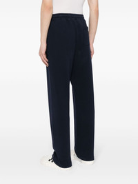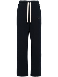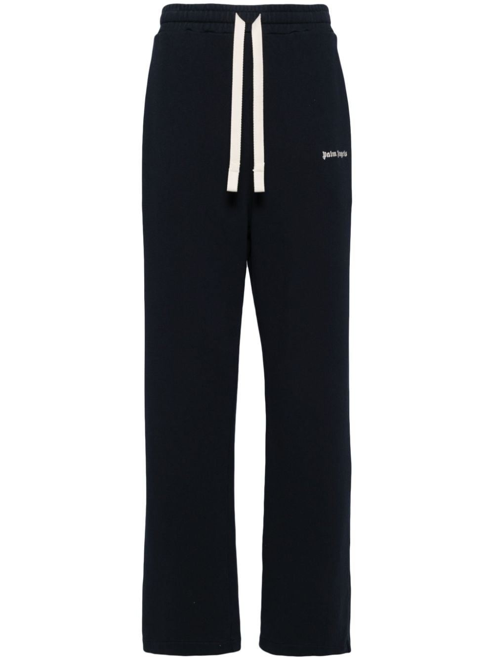 Classic Logo cotton track pants Cut from midweight cotton jersey, these navy-hued track pants speak to Palm Angels' penchant for sportswear-inspired garments. They fasten at the waist with a drawstring and fall to a straight leg adorned with a classic logo. Highlights - Navy blue - Cotton - Mid-rise - Elasticated drawstring waistband - Two side slit pockets - Logo print to the front - Rear patch pocket - Straight leg Made in Italy Composition Outer: Cotton 100% Lining: Polyester 100% SIZE & FIT Model measurements Height 6 ft 2 in(1.87 m) Bust/Chest 33.07 in(84 cm) Hips 35.43 in(90 cm) Waist 26.77 in(68 cm) FittingInformation Designed for a relaxed straight leg, allowing a comfortable and loose fit over the leg Adjust this piece’s waistband to your preference using the drawstring Made from a midweight non-stretch fabric, this piece offers minimal elasticity when worn This piece fits true to size – take your usual size Washing instructions Machine Wash