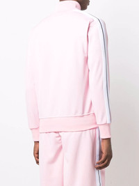 Classic side-stripe zipped jacket Recognizable by its stripe embellishment at the sides, Palm Angels' Classic jacket has become one of the brand's most coveted silhouettes and is included in its SS22 collection in a light pink iteration with white accents. Adorned with a printed logo at the chest, it fastens at the front with a zip and is complete with a high neck. Made in Italy Composition Outer: Polyester 100% Lining: Polyester 100% SIZE & FIT Model measurements Height 6 ft 2 in(1.89 m) Bust/Chest 35.43 in(90 cm) Hips 36.61 in(93 cm) Waist 28.74 in(73 cm) FittingInformation This piece fits true to size. We recommend you get your regular size Cut for a relaxed fit Made with a mid-weight fabric Washing instructions Machine Wash