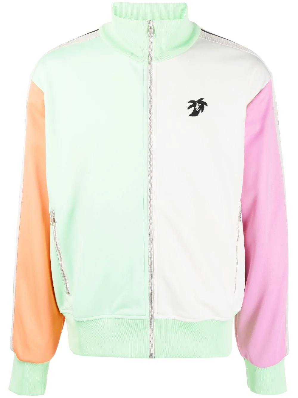 colourblock logo-print track jacket Catering to the brands' Californian aesthetic, this Palm Angels track jacket is constructed in a colourblock design, boasting bold contrasting hues and the signature logo palm tree print at the chest and back. Highlights - Multicolour - Colour-block panelled design - Logo print to the rear - Logo print at the chest - Stand-up collar - Front zip fastening - Long sleeves - Straight hem - When buying this unisex item, keep in mind that it is graded in standard men's sizing. Made in Italy Composition Polyester 100% SIZE & FIT Model measurements Height 5 ft 11 in(1.8 m) Bust/Chest 33.07 in(84 cm) Hips 37.4 in(95 cm) Waist 25.19 in(64 cm) FittingInformation This unisex piece is designed for a relaxed fit whether you usually select women's or men's sizes The ribbed hem offers a close, comfortable fit Washing instructions Hand Wash
