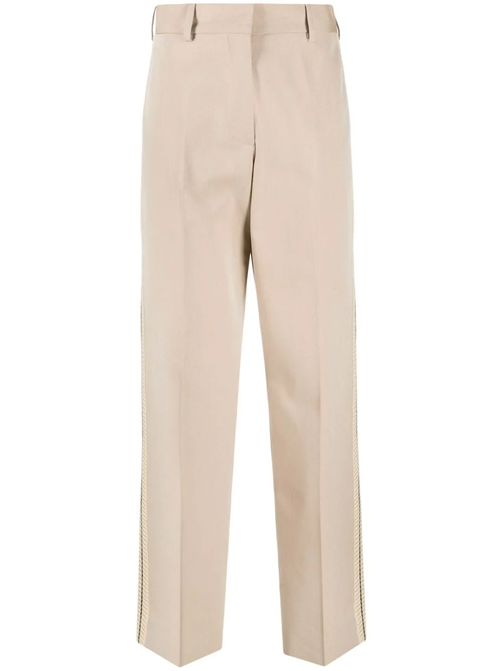crochet-stripe cotton trousers Crafted from cotton in Italy, Palm Angel’s trousers are emblematic of the brand's contemporary aesthetic. Arriving in a beige colourway, it boasts look-defining contrasting crochet stripes on the legs and is finished with a logo patch to the rear. Highlights - Beige - Cotton - Crochet stripes - Side stripe detailing - Concealed front fastening - Belt loops - Two side slit pockets - Two rear welt pockets - Straight leg Made in Italy Composition Outer: Cotton 70%, Polyester 30% Lining: Cotton 100% SIZE & FIT Model measurements Height 5 ft 9 in(1.76 m) Bust/Chest 33.07 in(84 cm) Hips 34.64 in(88 cm) Waist 25.59 in(65 cm) FittingInformation Designed for a straight-leg fit, these trousers allow for a close fit at the waist and an unrestricted, comfortable fit over the leg Made from a midweight non-stretch fabric This piece fits true to size – take your usual size Washing instructions Machine Wash