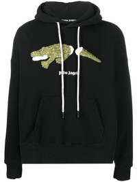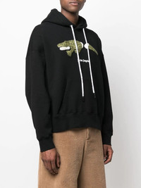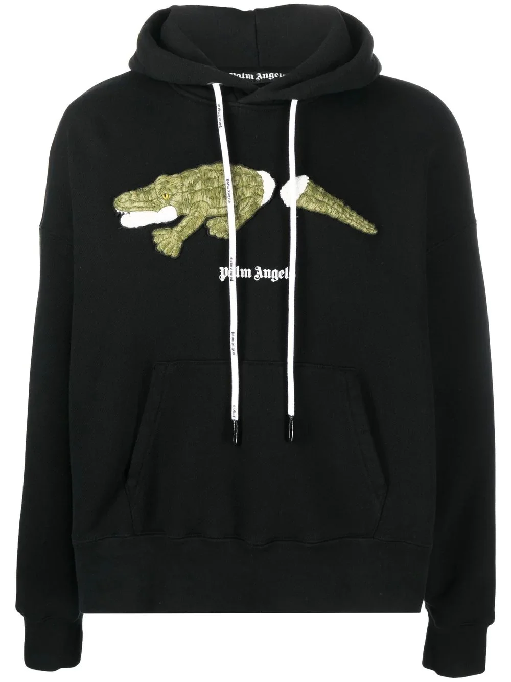 crocodile cotton hoodie black cotton/wool blend crocodile motif logo print at the chest drawstring hood long sleeves front pouch pocket elasticated cuffs elasticated hem Made in Italy Composition Cotton 100%, Acrylic 40%, Wool 40%, Polyester 20% SIZE & FIT Model measurements Height 6 ft 2 in(1.88 m) Bust/Chest 36.61 in(93 cm) Hips 35.82 in(91 cm) Waist 27.95 in(71 cm) FittingInformation This piece fits true to size. We recommend you get your regular size Cut for a relaxed fit Made with a mid-weight fabric Washing instructions Machine Wash