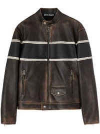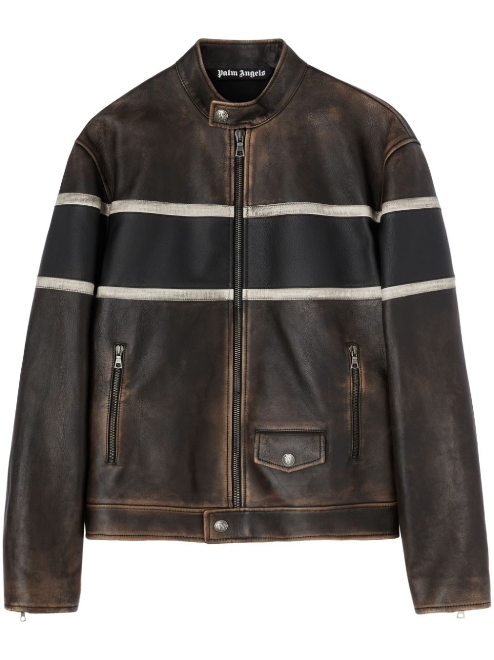 Crystal Pin-Up byker jacket Highlights - Earth brown - Front press-stud and zip fastening - Front flap pocket - Two side zip-fastening pockets - Logo print to the rear Made in Italy Composition Lining: Cotton 100%, Cupro 100% Outer: Leather 100%