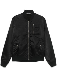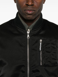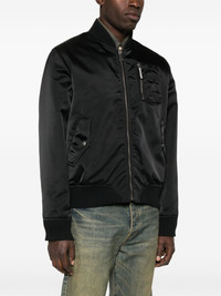 curved-logo bomber jacket Highlights - Black - Front zip fastening - Zip-fastening chest pocket - Two press-stud fastening side pockets - Baseball collar Imported Composition Polyamide 100%, Polyester 100%, Cupro 100% SIZE & FIT Model measurements Height 6 ft 0 in(1.84 m) Bust/Chest 35.82 in(91 cm) Hips 37 in(94 cm) Waist 28.34 in(72 cm) FittingInformation Designed for a relaxed fit, this piece allows for comfort and movement when worn The ribbed hem offers a close, comfortable fit Made from a midweight non-stretch fabric