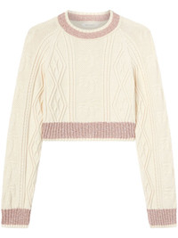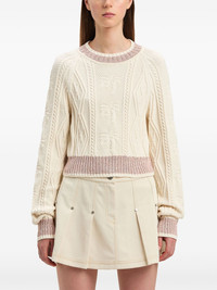 curved-logo cable-knit sweater Highlights - Light beige - Ribbed cuffs and hem - Stripe trim - Crew neck Made in Italy Composition Cotton 68%, Polyamide 32%