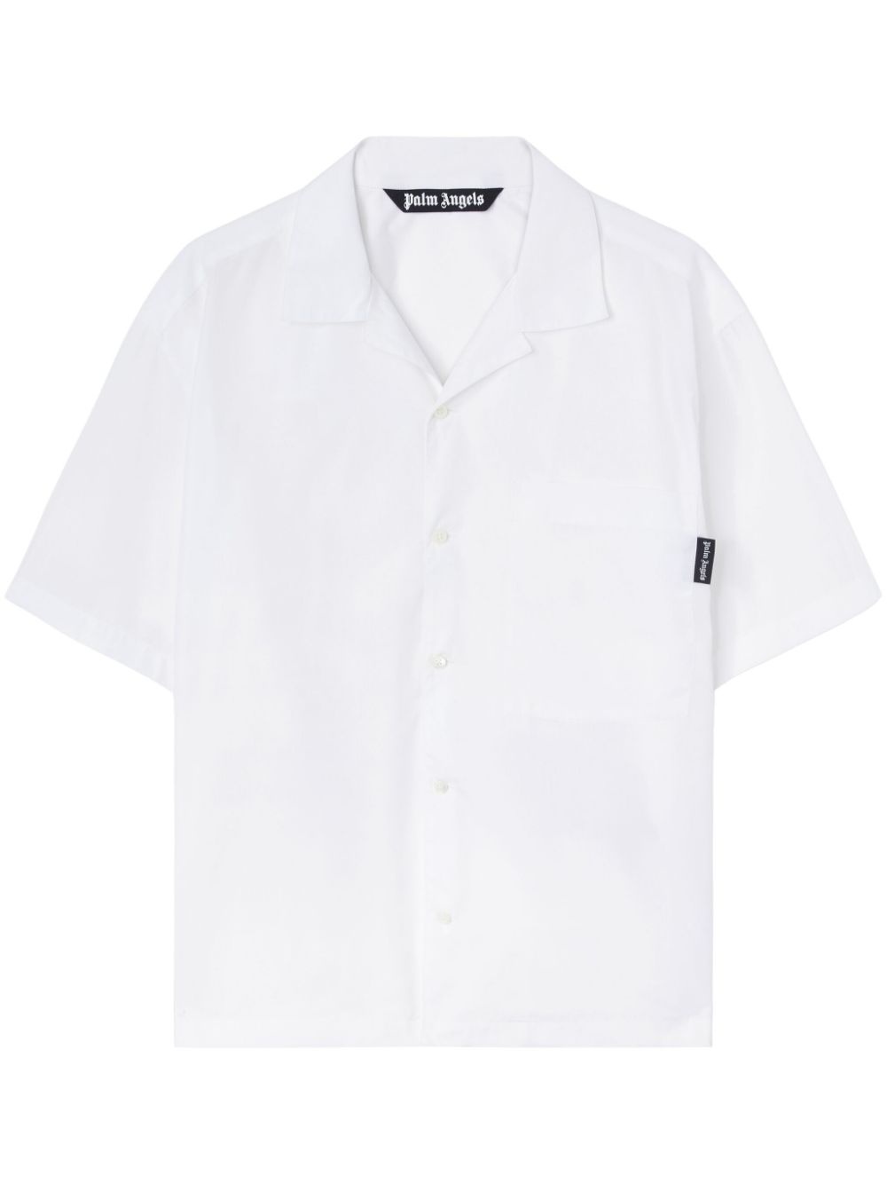curved-logo classic shirt Highlights - White - Front button fastening - Chest patch pocket - Cuban collar - Logo print to the rear Imported Composition Cotton 100% Washing instructions Read Manufacturer Guidelines