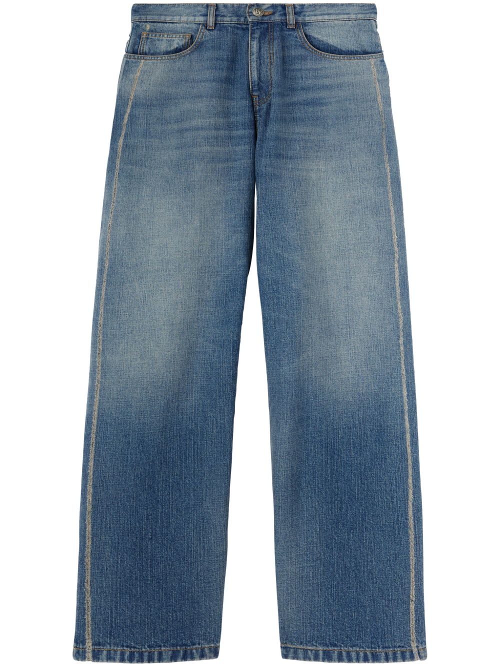 curved logo loose-fit jeans Highlights - Blue - Front button and zip fastening - Wide leg - Belt loops Made in Italy Composition Lining: Cotton 100% Outer: Cotton 100%