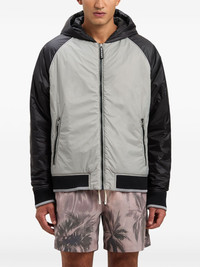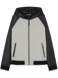 curved-logo windbreaker Highlights - Light grey - Front zip fastening - Two front welt pockets - Classic hood - Ribbed cuffs and hem Imported Composition Polyamide 100%, Viscose 100% Washing instructions Dry Clean Only