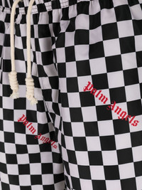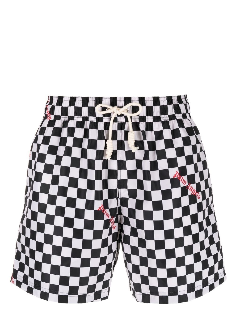 damier-print swim shorts These swim shorts from Palm Angels are decorated with the brand's recognisable damier print. In addition, logo lettering is incorporated into this piece in a red hue, allowing it to stand out against the monochrome design. Highlights - Black/white/red - All-over logo print - Elasticated drawstring waistband - Be mindful to try on swimwear over your own garments. Made in Italy Composition Outer: Polyester 100% Lining: Polyester 100% Washing instructions Machine Wash