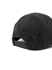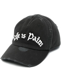 distressed baseball cap black/white cotton distressed effect embroidered slogan embossed logo to the rear curved peak adjustable strap to the rear Imported Composition Lining: Cotton 100% Outer: Polyester 100%, Cotton 100% SIZE & FIT Measurement BRIM 2.36 in(6 cm) CIRCUMFERENCE 22.04 in(56 cm)