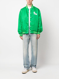 Straight-Leg Logo-Embroidered Distressed Jeans