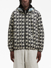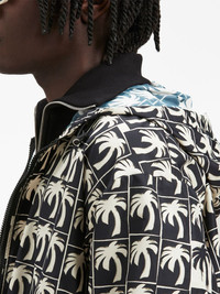 Dripping Palm hooded jacket Paying homage to Palm Angels' Californian roots, this hooded zipped jacket is decorated with the brand's seasonal Dripping Palm throughout. Made in Italy, this relaxed silhouette is fitted with an elasticated hem and cuffs. Highlights - Black/off-white - Palm tree print - Front zip fastening - Drawstring hood - Two side zip-fastening pockets - Long sleeves - Elasticated hem - Elasticated cuffs Made in Italy Composition Polyamide 100%