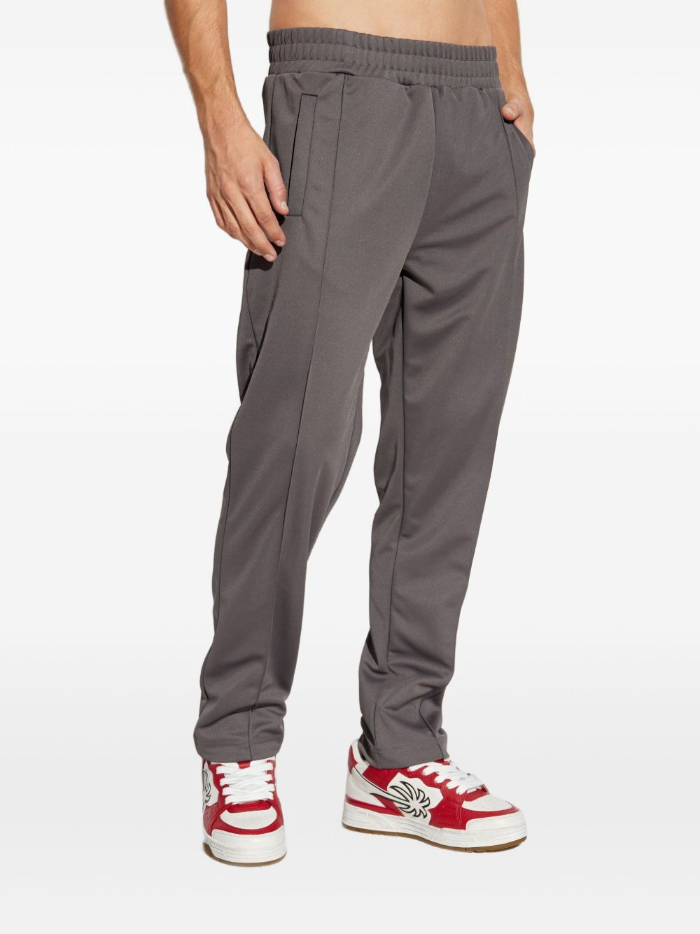 elasticated-panel track pants Highlights - Grey - Elasticated waistband - Side welt pockets - Rear logo print Imported Composition Polyester 100% Washing instructions Read Manufacturer Guidelines