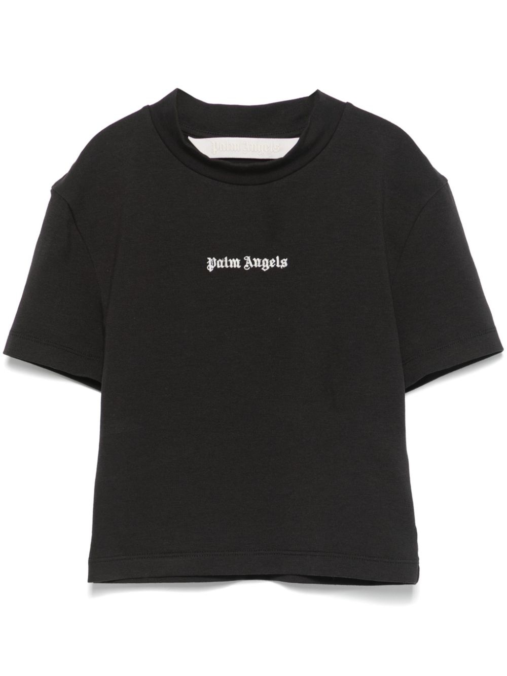 embroidered-logo cropped T-shirt Highlights - Black - Crew neck - Short sleeves Imported Composition Polyester 47%, Cotton 47%, Spandex/Elastane 6% SIZE & FIT Model measurements Height 5 ft 10 in(1.78 m) Bust/Chest 33.85 in(86 cm) Hips 36.61 in(93 cm) Waist 26.77 in(68 cm) FittingInformation Designed for a close fit throughout Made from a midweight stretch fabric, this piece offers elasticity and flexibility when worn